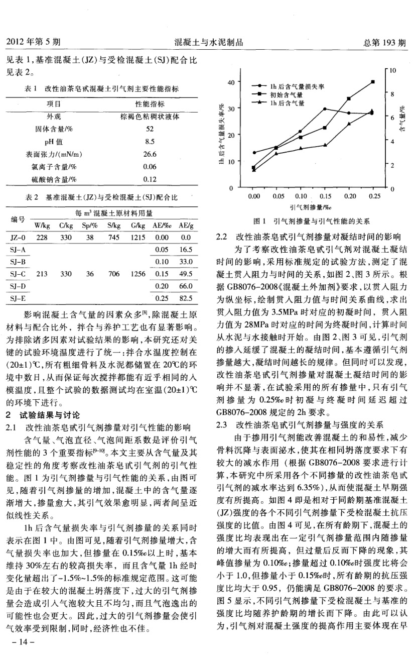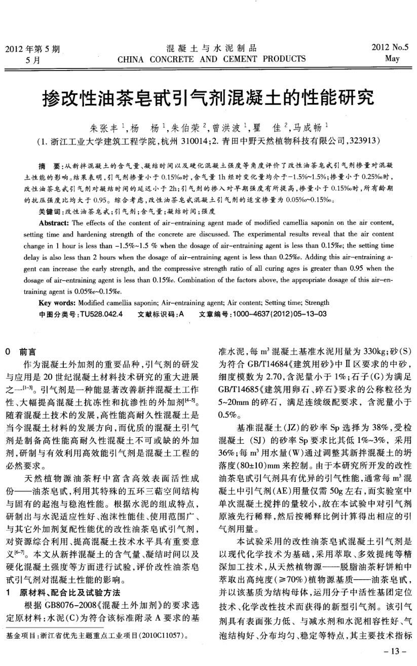 摻改性油茶皂甙引氣劑混凝土的性能研究