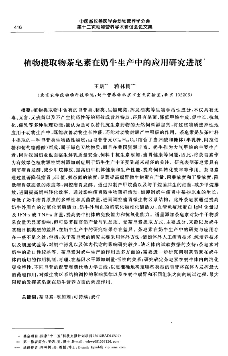 植物提取物茶皂素在奶牛生產中的應用研究進展