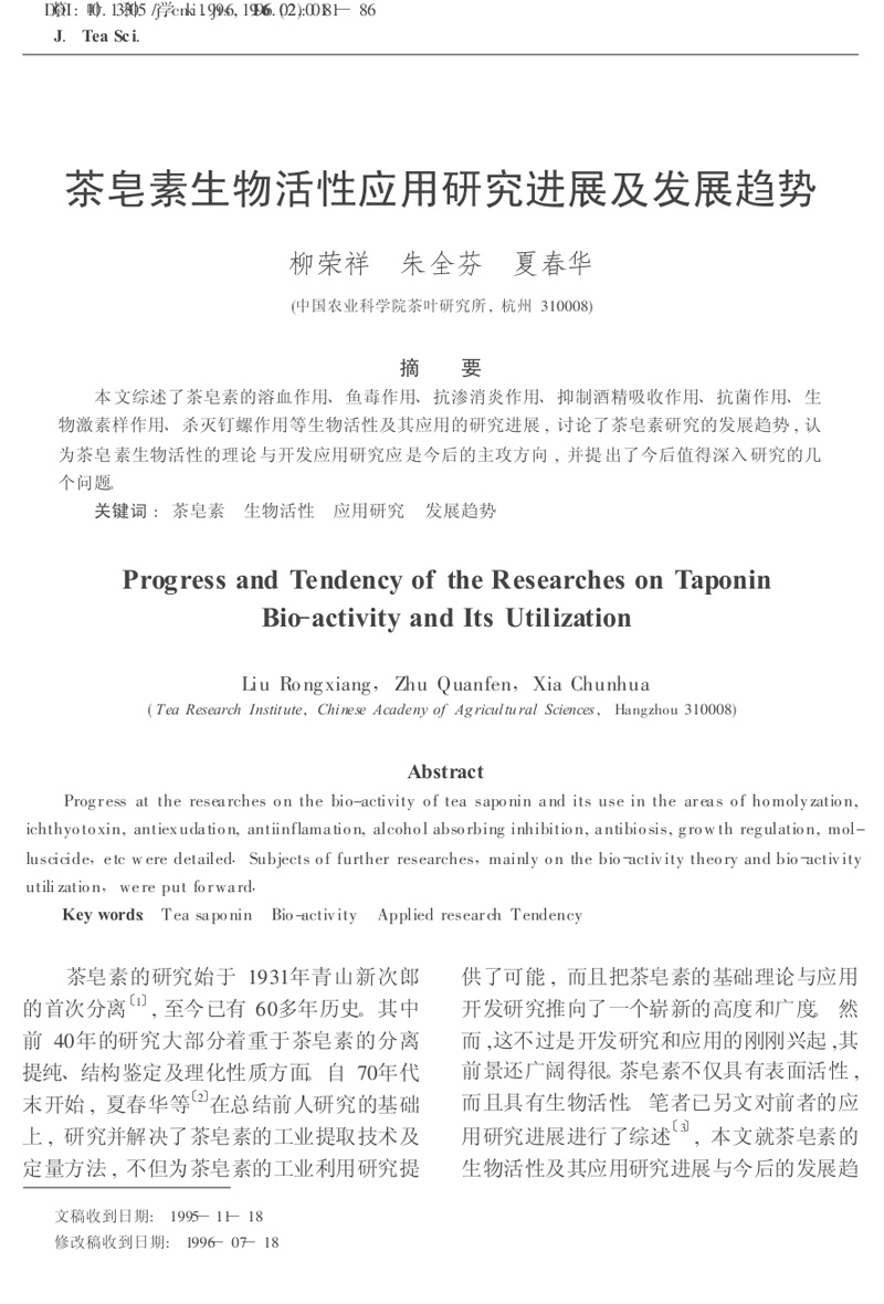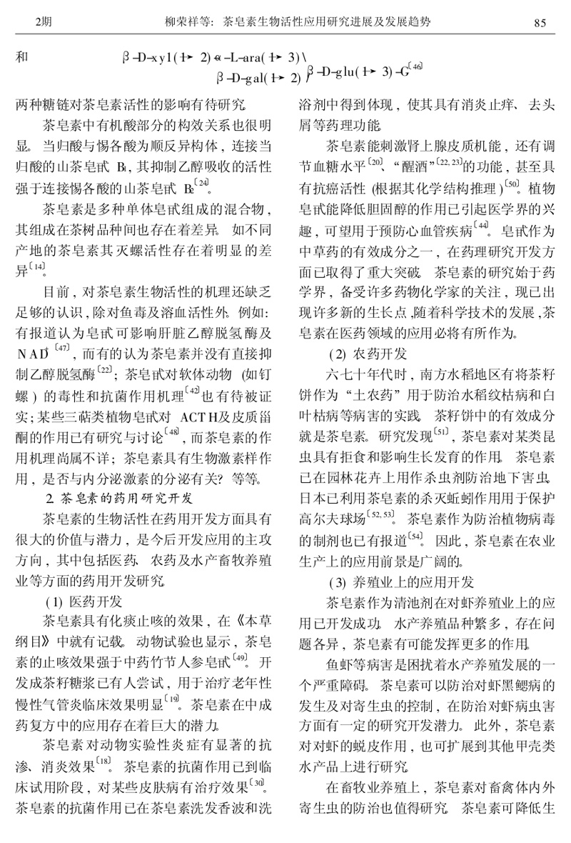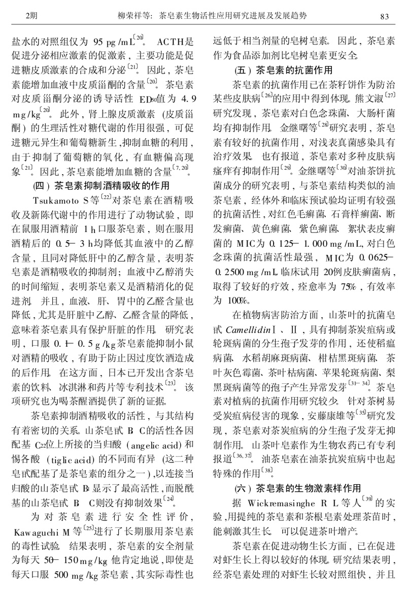 茶皂素生物活性應(yīng)用研究進(jìn)展及發(fā)展趨勢(shì)